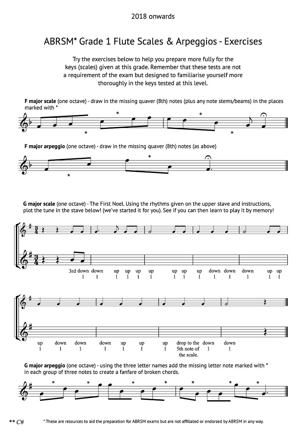 Flute Grade 1 (ABRSM*) Exercises/worksheet - taking it further!