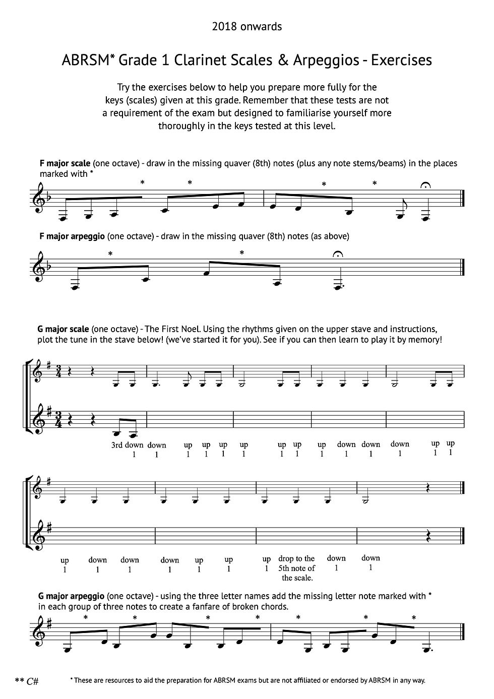 Clarinet Grade 2 (ABRSM*) Exercises/worksheet - taking it further!